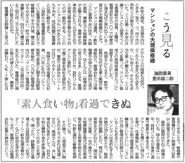 自宅マンションでの理事長・修繕委員長の経験から、建築・管理業界主導の管理組合運営の問題点を痛感!100%管理組合側に立つコンサルタント集団を創設し、コンサルティング実績は約700件。また約60件の組合顧問を努め、今回の来場者プレゼント書籍の著者でもある。組合への啓蒙活動のために、年間50回以上の講演、多数の執筆、テレビ出演等の活動も行っている。